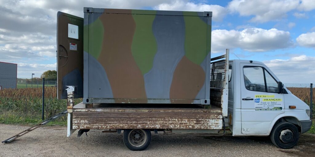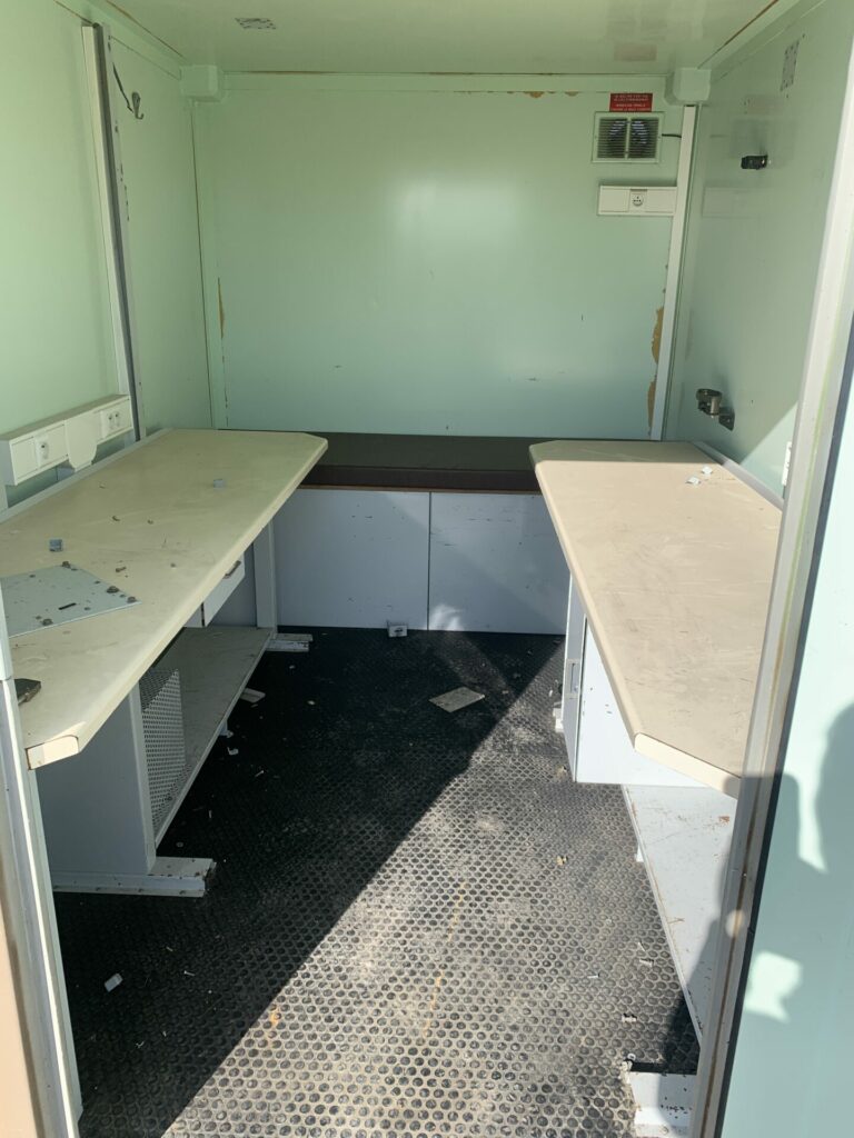 équipé tableau électrique avec prise, éclairage, bureau banquette, radiateur à bain d’huile, volet d’entrée d’air et extracteur électrique